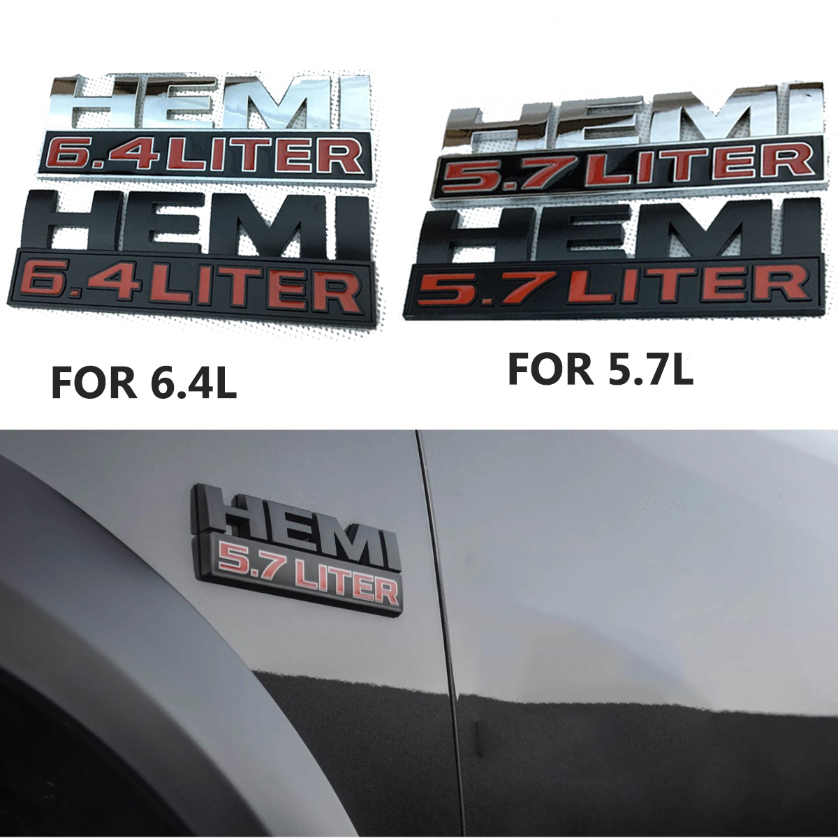 2pcs HEMI 5.7 LITER 6.4 LITER VINYL DECALS LACK Emblem Badge Wing Side Badge Emblem Sticker for Jeep Dodge